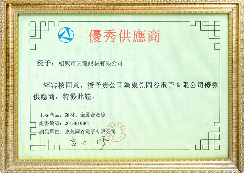 六和電子2021年度優(yōu)秀供應(yīng)商